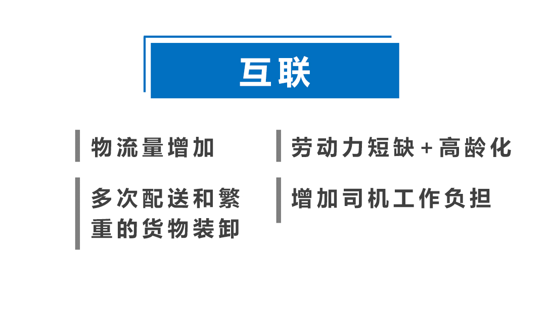 第三点就是互联。物流量增加导致的劳动力短缺、多次配送和繁重的货物装卸带给货运司机的沉重负担、数字化深化催发新的物流需求等等,为了解决这些难题,我们必须面对数字化时代的“产业大变革”。