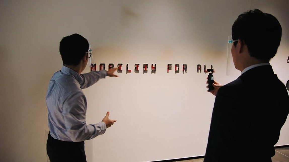 在办公区入口处的墙壁上写着“Mobility For All”的文字。让人感到非常贴心的一点是,这里的文字不但可以看到,还可以用手触摸到,全部标注有盲文标识。从这一点不难看出丰田“希望成为能够为所有人们带来舒适与快乐。”的移动出行公司的决心。