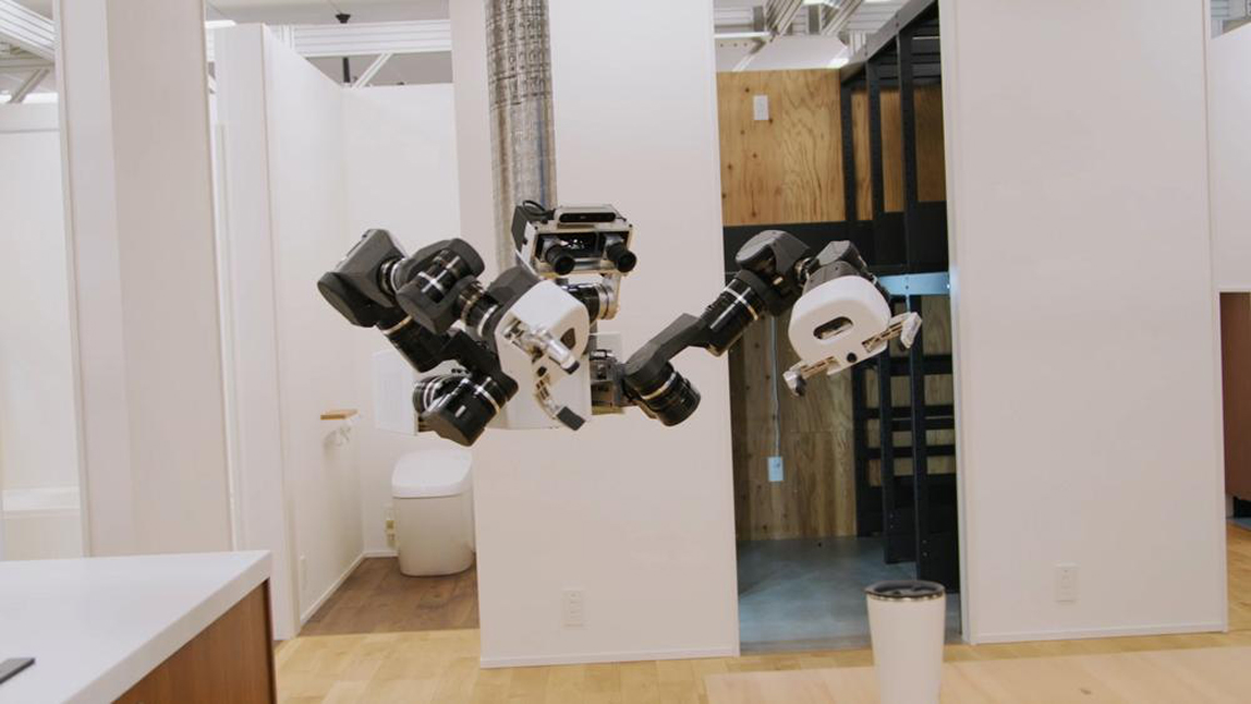 硬件负责人高冈丰先生为我们介绍了沿天花板导轨移动的机器人。为了使机器人在凌乱的家中无障碍行驶,他们想到了利用天花板。这种机器人装有吊臂,能够自动识别对象物体并伸出吊臂握住。期间还为我们展示了吊臂端起玻璃杯的试验。高冈先生介绍到,今后这款机器人将被用于完成厨房的洗碗工作、打扫浴室及厕所的工作,还有整理房间的工作。