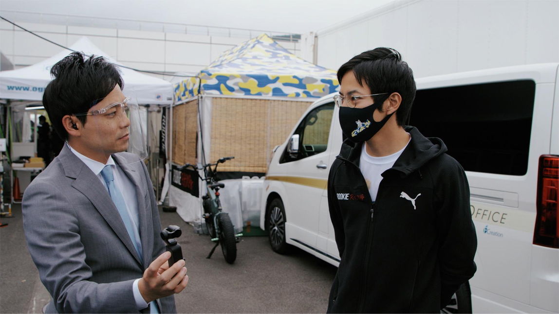 森田记者首先采访的是担任先发车手的小林可梦伟选手,他刚刚下车并回到维修区。用燃料为氢能的赛车参加耐力赛,这在全世界范围内尚属首次。也就是说,可梦伟选手是世界上第一个在比赛中驾驶氢燃料发动机汽车的车手了。