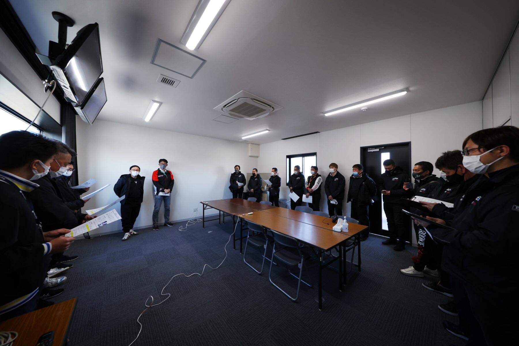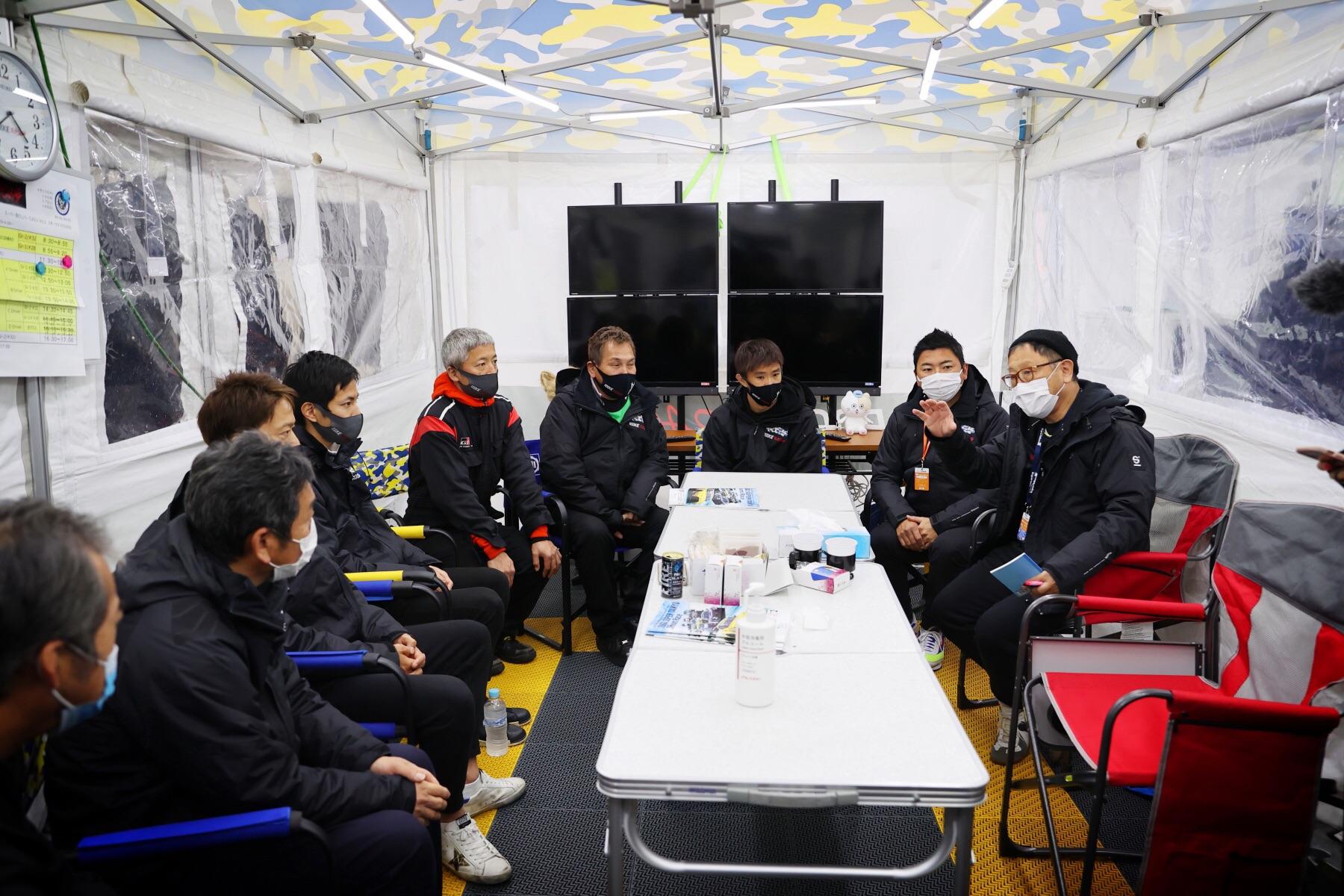 在预选赛结束后,GR YARIS的车队成员们举行了会议。Morizo对一同面对挑战的车队成员们表示了感激之情。