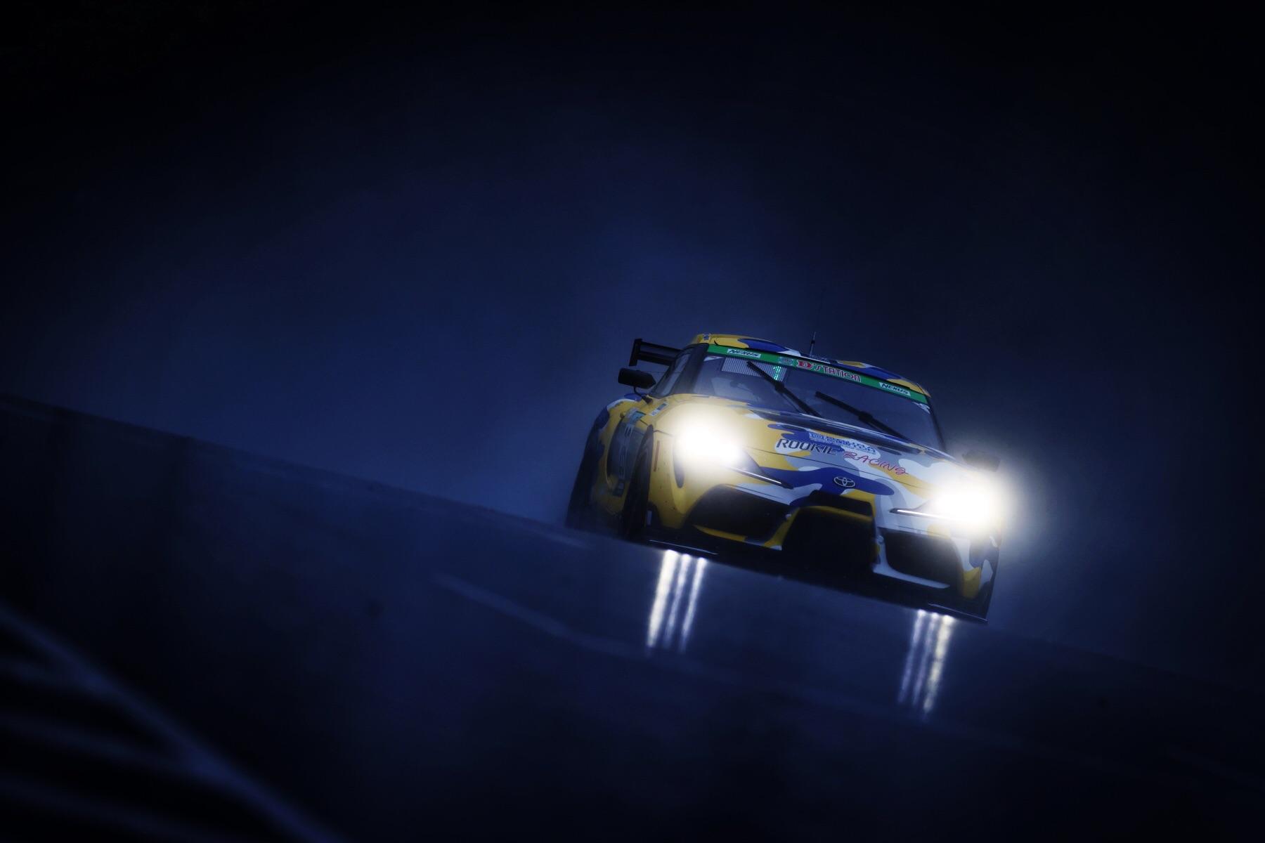 事实上比赛却朝着更加戏剧性的方向展开了。GR YARIS原定按照佐佐木雅弘选手、Morizo选手、井口卓人选手的顺序接力。但是由于碰撞事故导致安全车驶入赛道,加上赛道外的路面都被雨淋湿了,所以他们紧急变更了顺序,由井口选手担任第2棒。在雨停后,干燥的路面加剧了轮胎的磨损,这导致Morizo跑了超出预定的圈数。