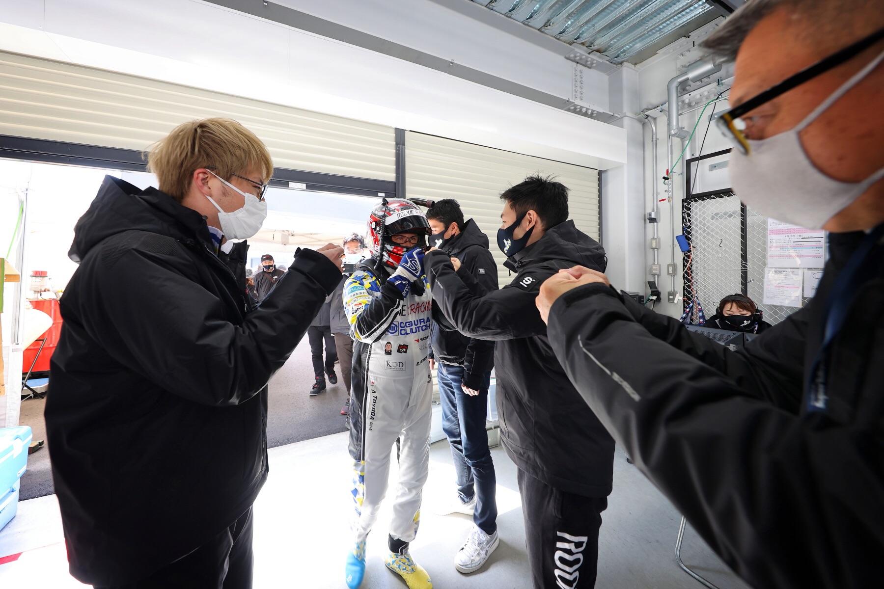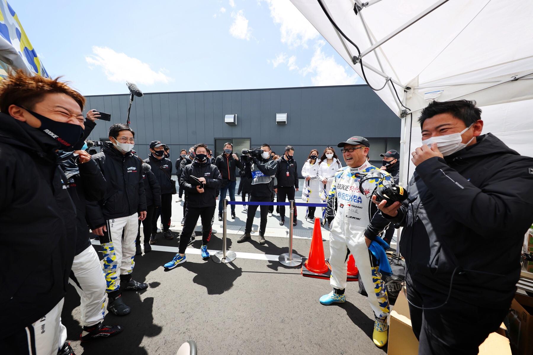 回到维修区,Morizo才得知自己最后排名第4,在最后一圈时被对手超车。他听后并未沮丧,满脸笑容。身为master driver,此时的他只感觉充实、满足。看到如此模样的Morizo,ROOKIE Racing的各位也露出了笑颜。
