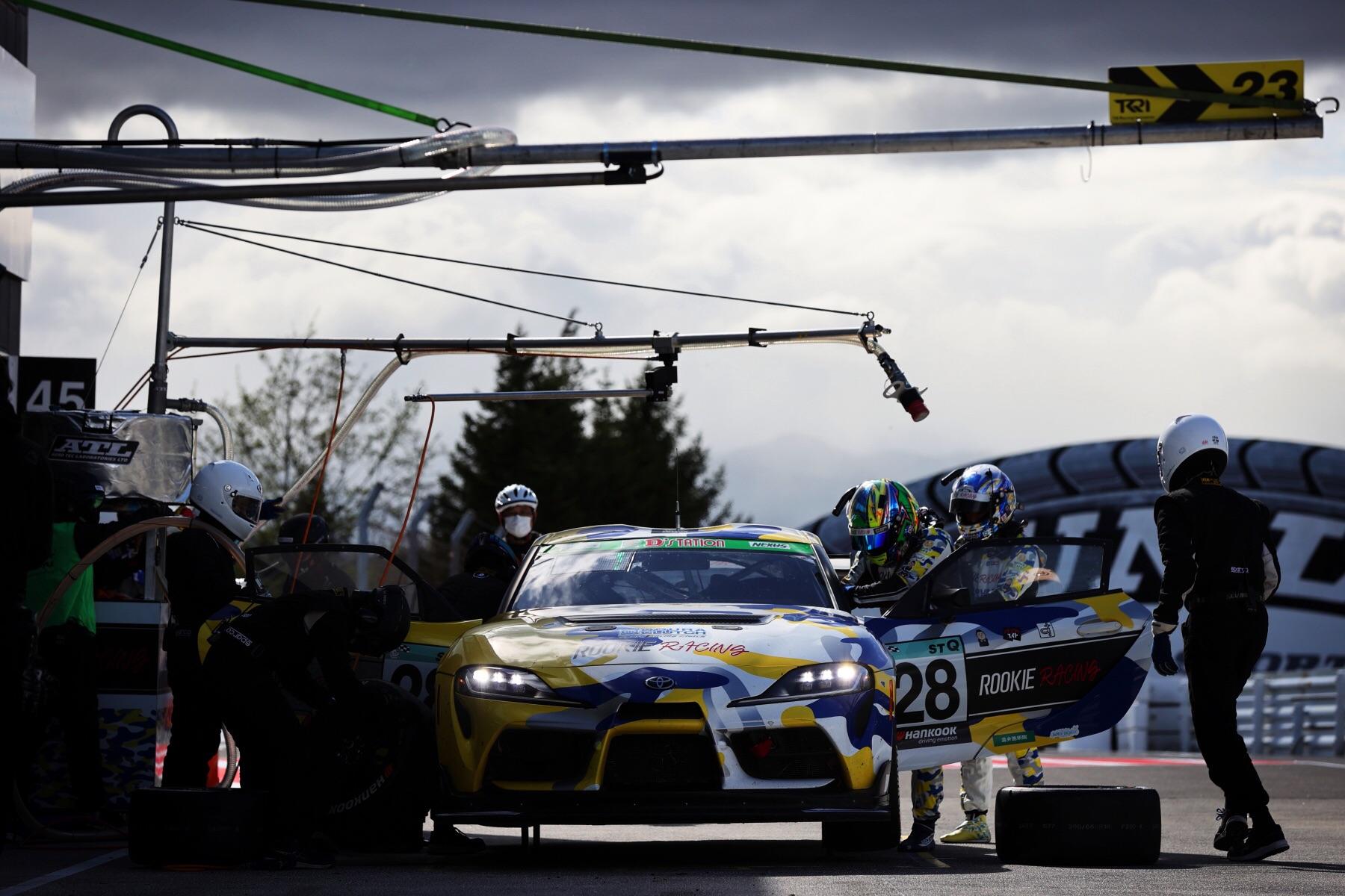 超出预定圈数12圈,历时50分钟……Morizo顶着同组强队的追击,以自己的最好速度全力行驶。后来我们才知道,由于某种原因,Morizo在上车的时候耳机插头松动,所以车队人员无法通过无线通话将赛场情况告诉他,所以当时他是孤立无援的状态。虽然最后被其他车辆超越,错失站上领奖台的机会,但是ST-2组的另一支私人团队——神户TOYOPET,其参赛用的GR YARIS继上一场比赛获胜后,取得了两连胜。这对于负责研发的ROOKIE Racing与GR YARIS来说,都可谓是巨大的成果。