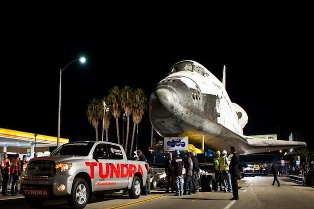 丰田与宇宙联系起来的契机是2012年航天飞机奋进号的陆地运输。当时由于桥梁强度问题而不能使用重型机械进行牵引作业,因而使用丰田敞篷运货卡车・坦途代行牵引作业。