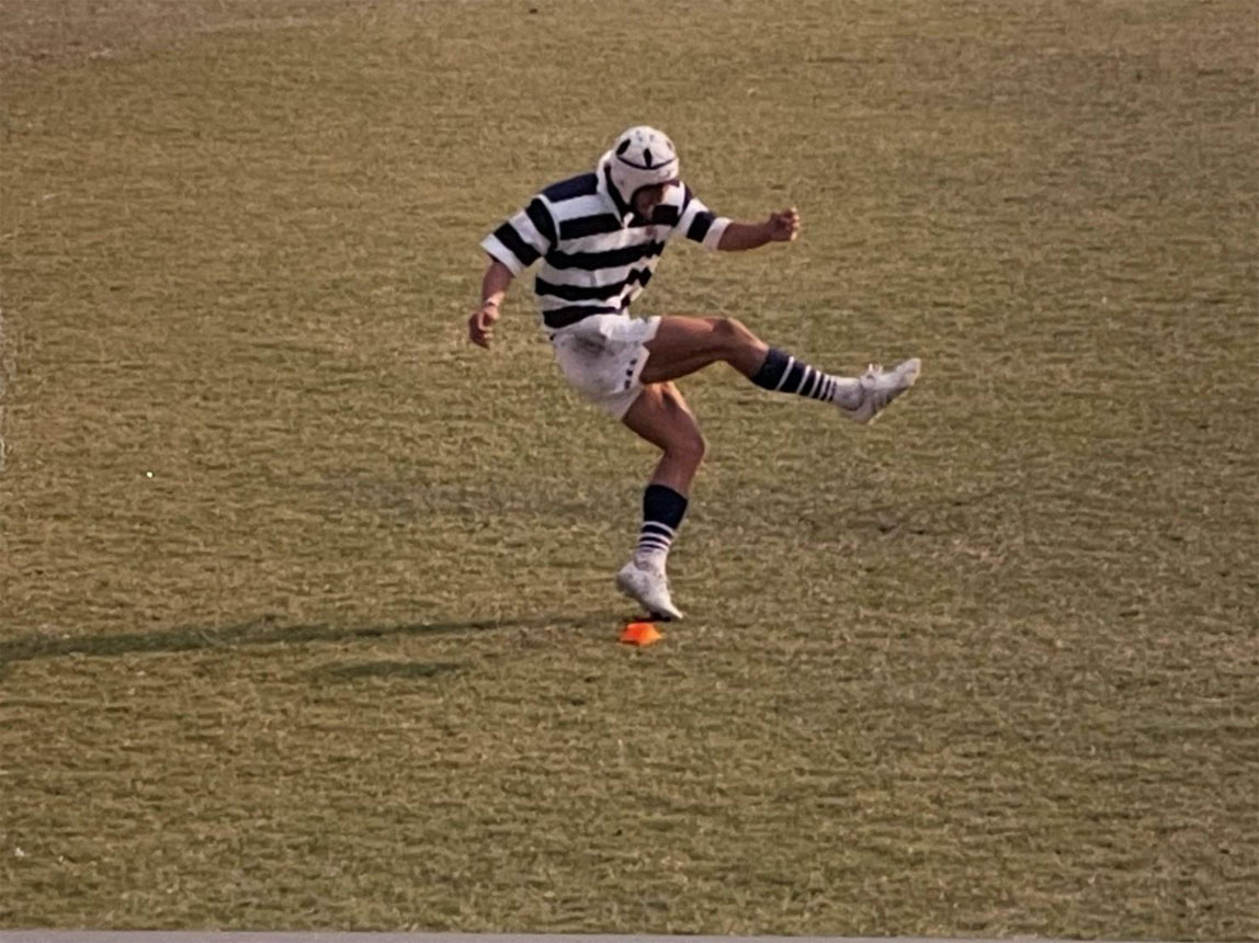 当时,我星期六在田径比赛的少年团进行练习,星期天在橄榄球学校练习。但在不知不觉中我就将重心转移到了橄榄球上。我是在岐阜县出生长大的,这里和东京、大阪相比橄榄球学校的数量很少,也不算是主流运动项目。那时我是负责突破对方后场位得分的球员,如果因为自己的得分而赢得比赛就会感到非常开心,所以我渐渐喜欢上了橄榄球。