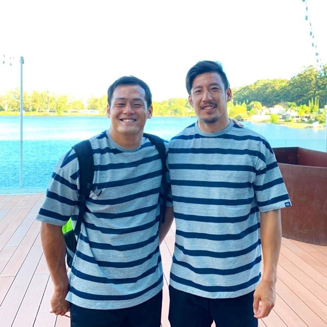 上图左侧为同属于Toyota Verblitz的彦坂匡克选手,在七人制橄榄球队中作为代表选手与小泽选手并肩作战