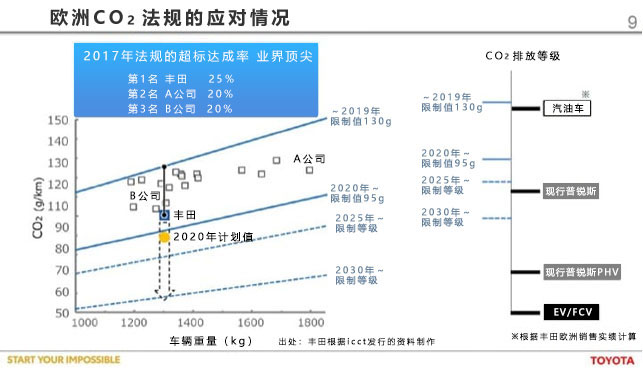 [资料]丰田根据欧洲委员会的官方数据制作的图表(引自丰田汽车的资料)