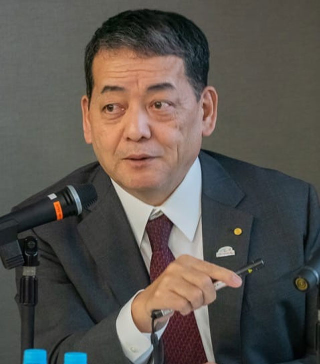 [照片]在4月8日丰田东京总公司召开的记者说明会上,谈及开放HV技术专利的寺师茂