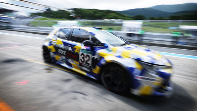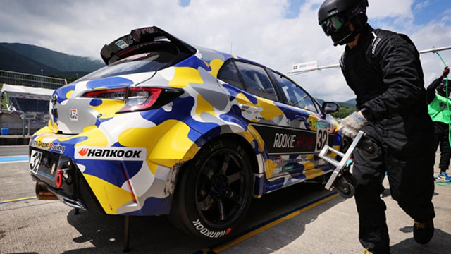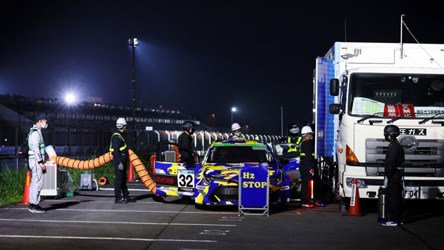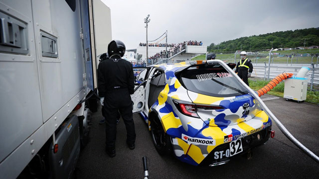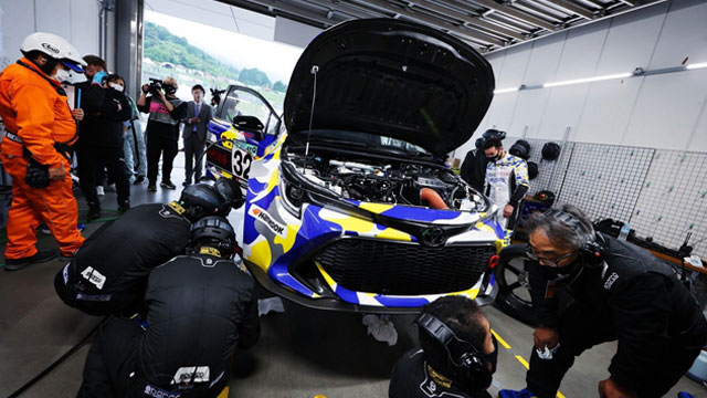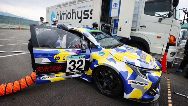 比赛开始后,搭载了氢燃料发动机的COROLLA驶过终点直道。车手是可梦伟选手。