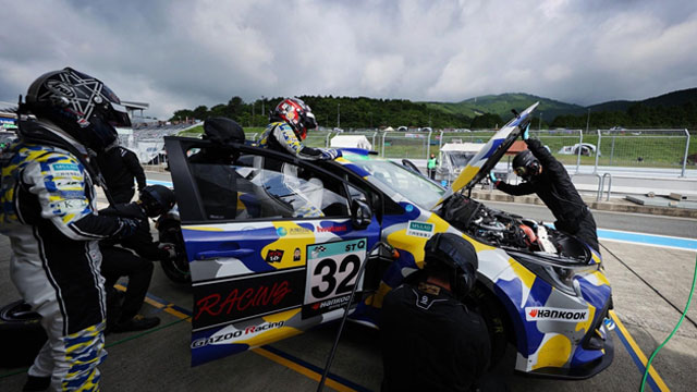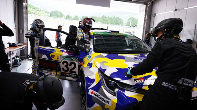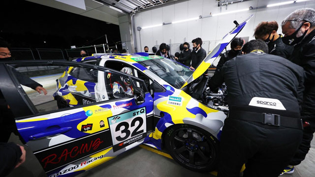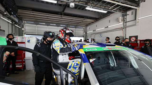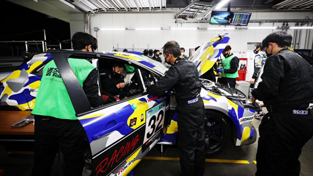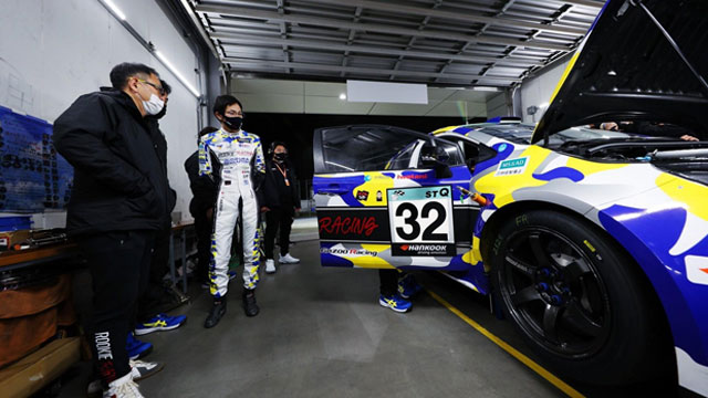 但在距离比赛结束还有1个小时的时候,由于方向盘的异常,导致赛车无法维持稳定性。石浦车手紧急驶入维修区。经过确认,发现是因右侧后车轮的减震器螺母掉了所致。