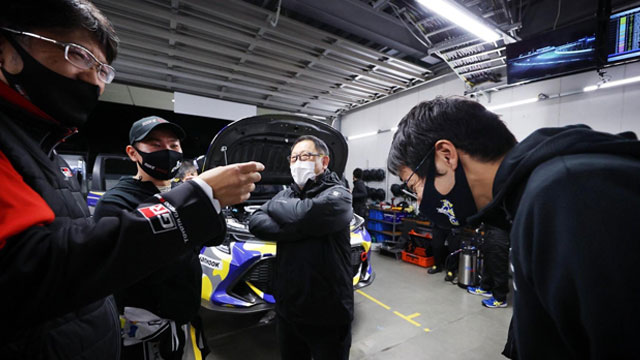 即使进入赛道,Morizo也只跑了一圈就回了维修区。因为传感器检测到发动机舱内有“氢泄漏”,所以无线电发出了进入维修区的指示。车子停进维修区,机械师们立刻开始寻找故障的原因。