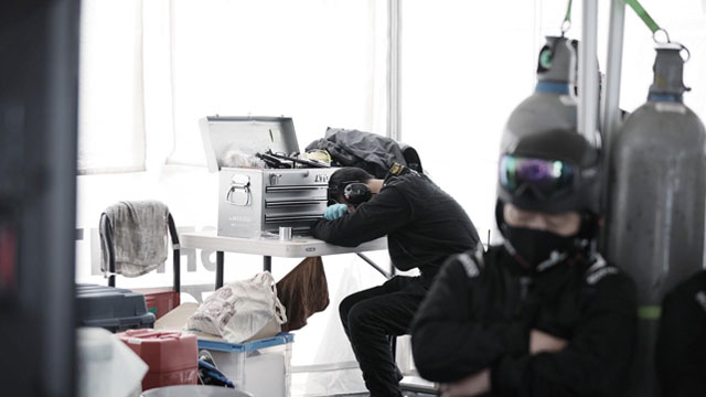 机械师、工程师,包括可梦伟选手、松井选手也加入了,出动全体成员的修理工作持续了很长时间,在无法返回赛道的情况下,时间来到了第二天。