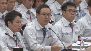 在做出回答之前,我想先向各位讲一点。今天我们就各岗位的现状进行了探讨。自上次春季的劳资协议会之后,许多工会成员在改变意识与行动方面已经迈出了第一步。但是另一方面,许多岗位中仍然存在着意识没有彻底改变,没有付诸行动的成员。这一点刚才也提到了。