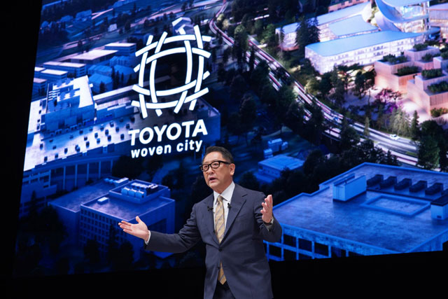 之后,话题回到了 Woven City。那么,为什么会产生Woven City的想法呢?这是年初致辞中也提到的话题。