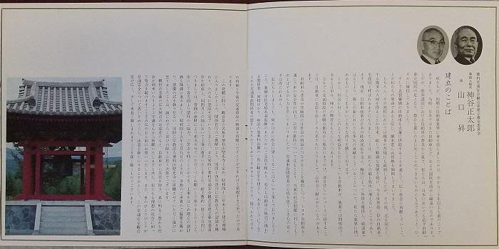 1970年7月9日的落成典礼上,发给每位出席者的小册中记载着作为发起人代表,神谷社长和当时担任丰田经销商协会理事长的山口升(爱知丰田汽车)先生的“建寺感言”。