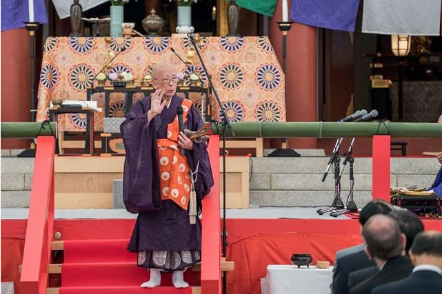 今天能够和大家一起祈祷交通安全,多亏了当初的丰田销售公司和全国丰田经销商共同建造了这座寺庙,是名誉会长自始至终从未动摇过其初衷的结果。