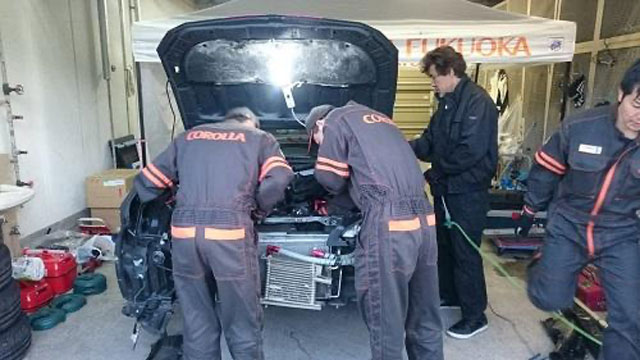 这名丰田的员工确认过赛车状况后,说道“还是有可能修好的……”。这时,他的其他队友也开始加入维修的队伍中。持续了6个小时抢修工作让赛车重新回到了赛道,顺利完成了第二天的预赛,并最终跑完了决赛。