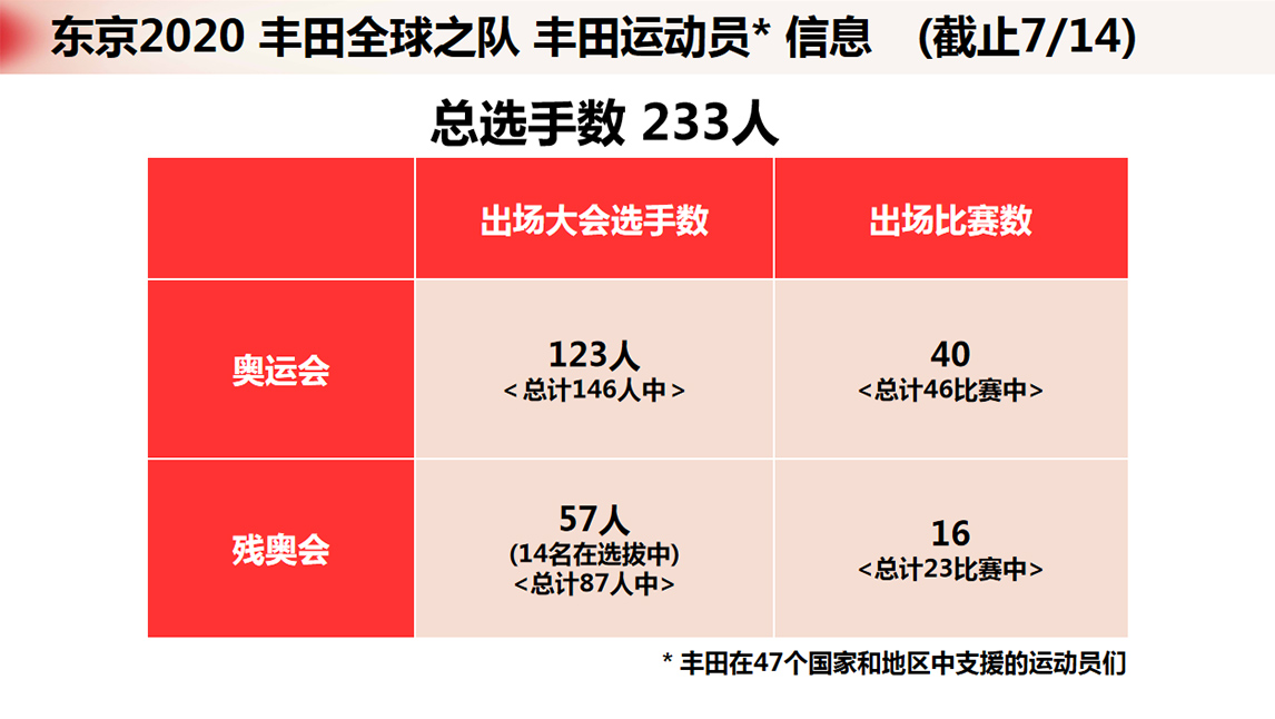 丰田公司所支援的运动员们也是丰田家族中的一员。
