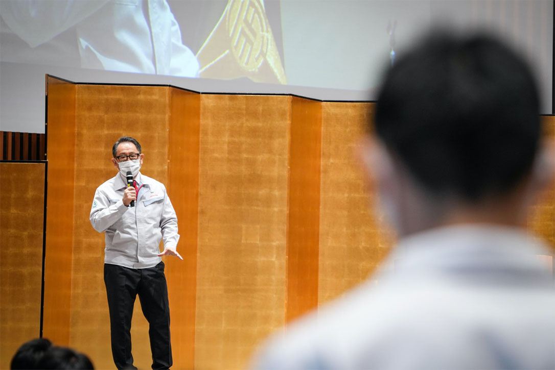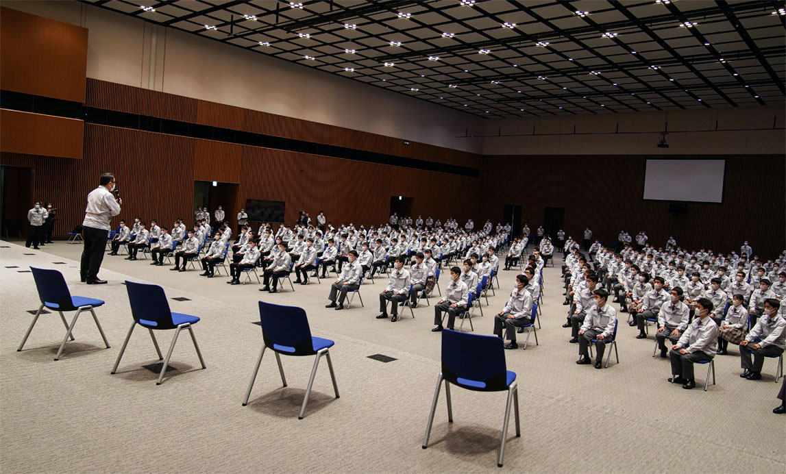 接下来大家将在各种领域的岗位上大展身手。我希望大家将分配到的工作视为与自己有缘分,然后就会爱上自己的工作,除此之外还能做到尽情表达自己对汽车的喜爱就非常好了。