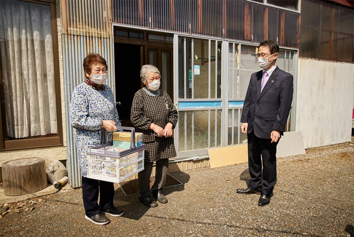 刚才那位老奶奶也一边说着感谢,一边不时地擦着眼泪。比起商品送到家,老奶奶更期望能与送货上门的KUZUMAKI超市工作人员聊上几句。此时的她表现得开心了一些。那位工作人员也说:“上门配送有一个很大的作用,那就是与独居的老人直接见面交谈。”轻松的聊几句、与人的接触成为了很大的支撑。