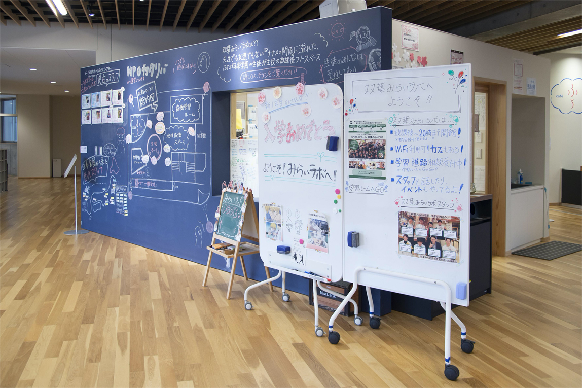校长先为我们介绍的是名为“双叶未来实验室”的自由空间。在这里普通民众也可以自由出入,是学生们与当地人交流的一处特殊共享空间。