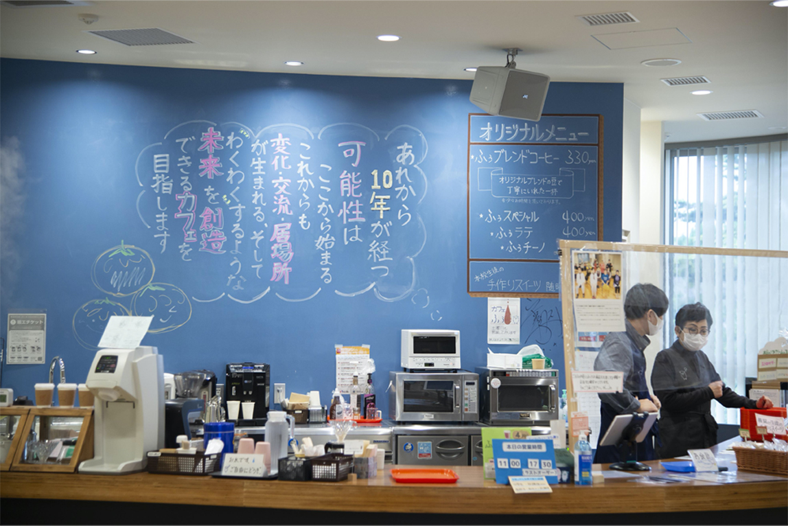 这里有一间咖啡厅,是由作为社团的社会创业部咖啡厅团队运营的。该咖啡厅除了售卖使用当地特产制作的蛋糕和自制混合咖啡之外,新冠疫情期间还在网上进行商品销售,甚至在社交平台上发布相关信息。