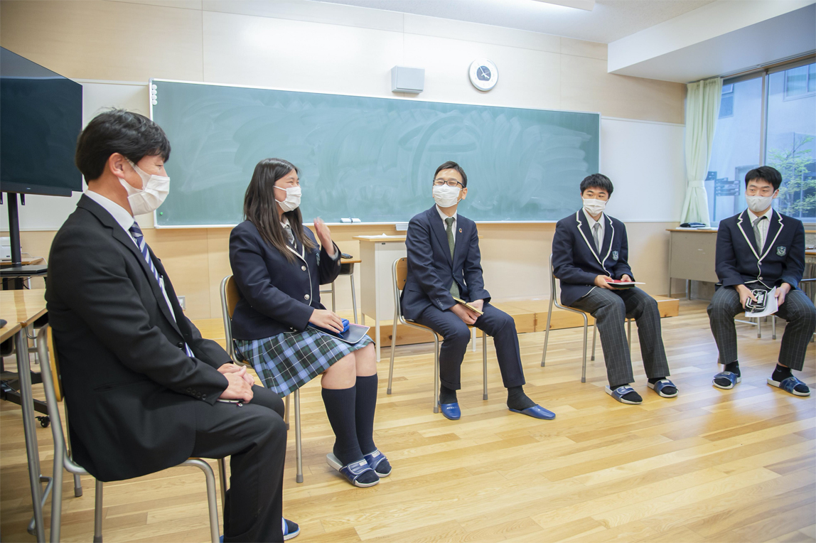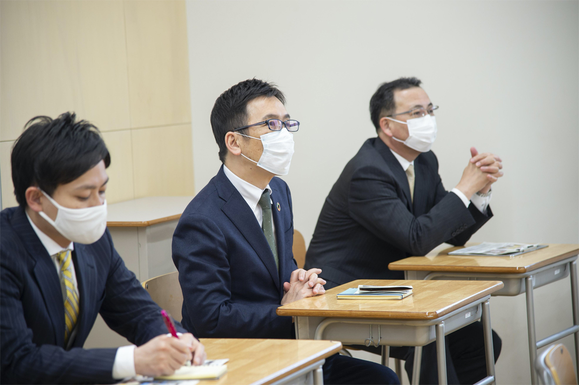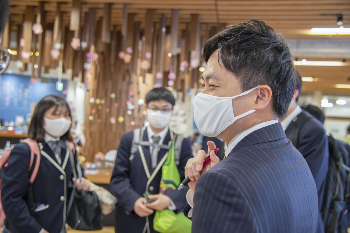 在此次参观中,桑田CHRO也走进了课堂,参加了同学们的发表会。坐在教室座位里的他,略显羞涩地感叹道:“我上次坐在教室里差不多是35年前的事了……”。他全程认真地倾听着学生们的发表内容。
