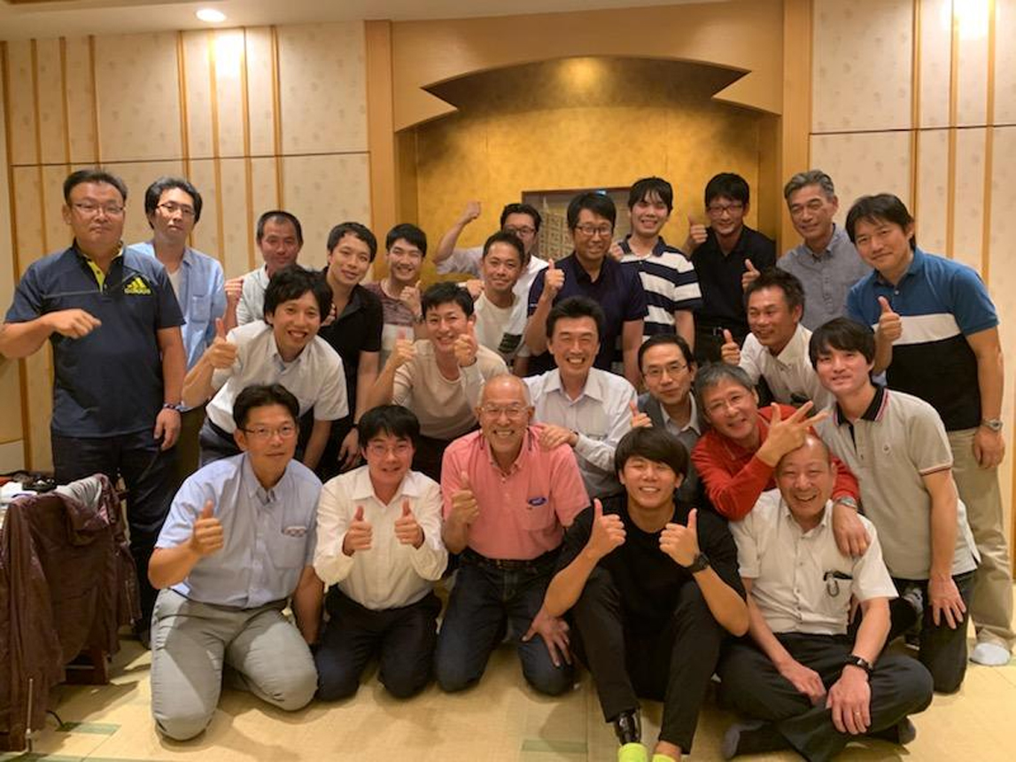 2019年秋天举办的联欢会现场。成员们的满脸笑容证明了沟通非常顺畅。最前排从右第二为佐藤圭太选手