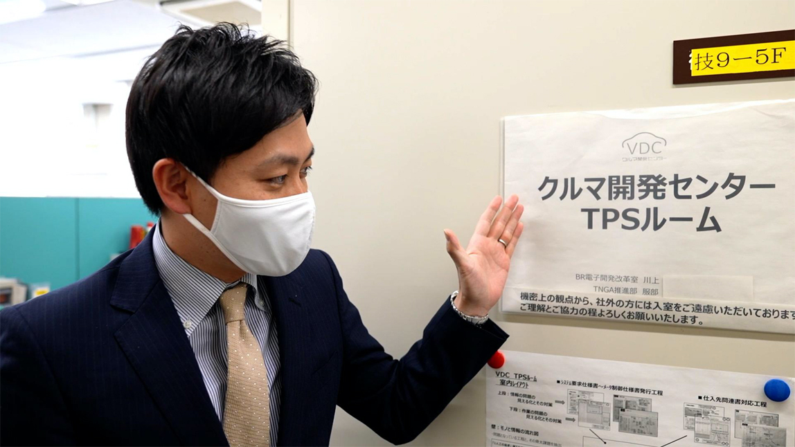 首先,为大家介绍一下汽车研发中心的TPS成员们。BR电子开发改革室的川上广纪组长和TNGA推进部的服部正敬副组长。以这两人为中心,10多名成员在汽车研发中心内设立了TPS工作室,并在此致力于推进改善活动。