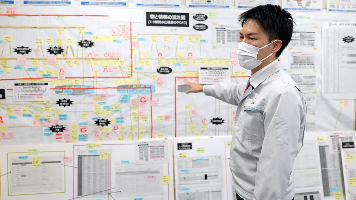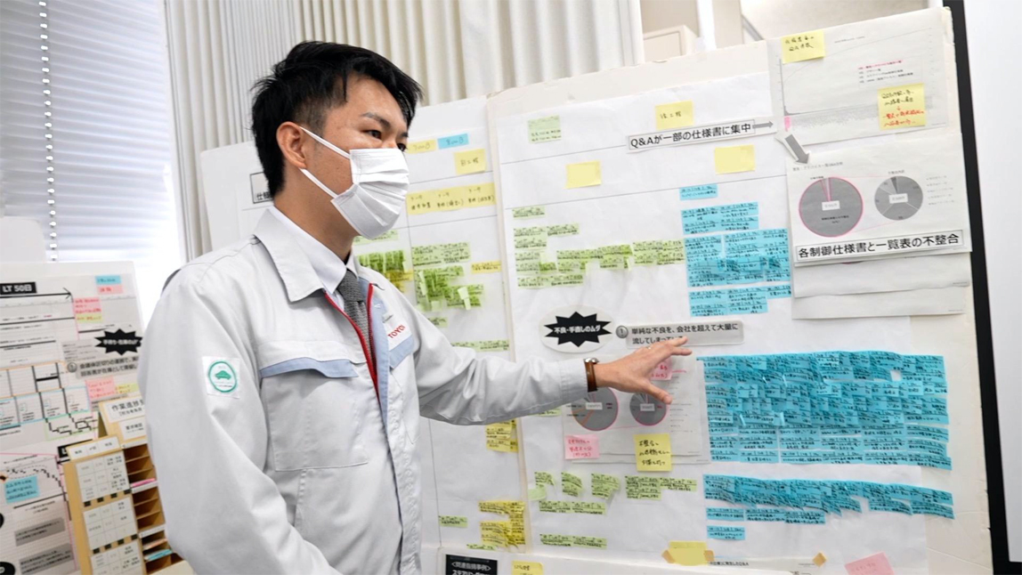 这次,我们直接对汽车研发中心的“TPS工作室”进行了采访。该工作室是在联合汇报会议上负责汇报相关内容的部门之一。在工作室成员的带领下,我参观了实际进行改善活动的一线场所。在浸透了成员们辛勤汗水的一线,我发现了许多他们认真致力于改善的足迹。