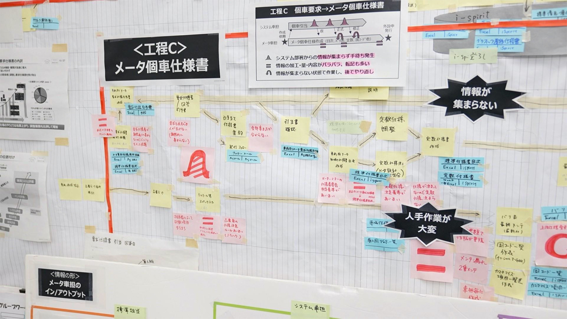 据悉,在此次改善中,将“物与情报的流程图”中的流程分成3个部分,找出了其中的问题点。首先,系统部门与负责设计仪表盘标准的汽车研发中心负责人进行了协商,发行了要求说明书。最后制作仪表的工作流程说明。
