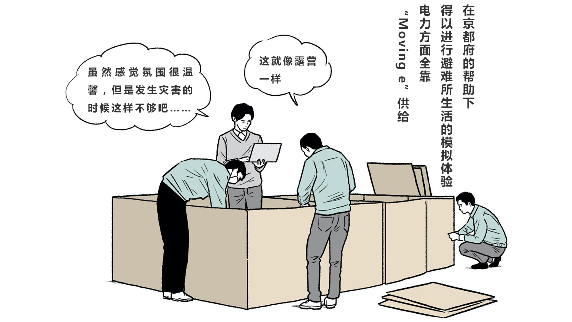 时值12月20日,京都的冬天寒冷彻骨。丰田和本田的工程师们特意选了这个时节亲自进行了实证试验。之所以如此,是因为他们想要感受真实的避难所生活,真正体会到其中的困难之处,并验证“Moving e”在这种情况下该如何更好地发挥作用。