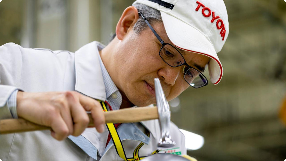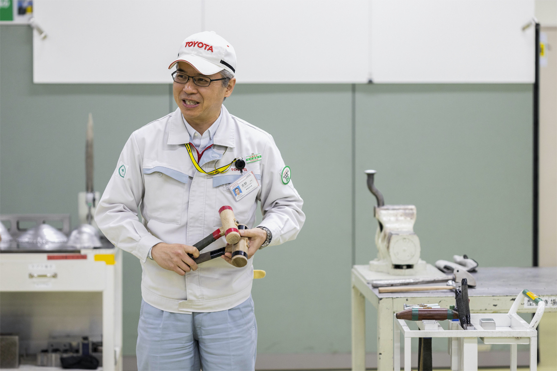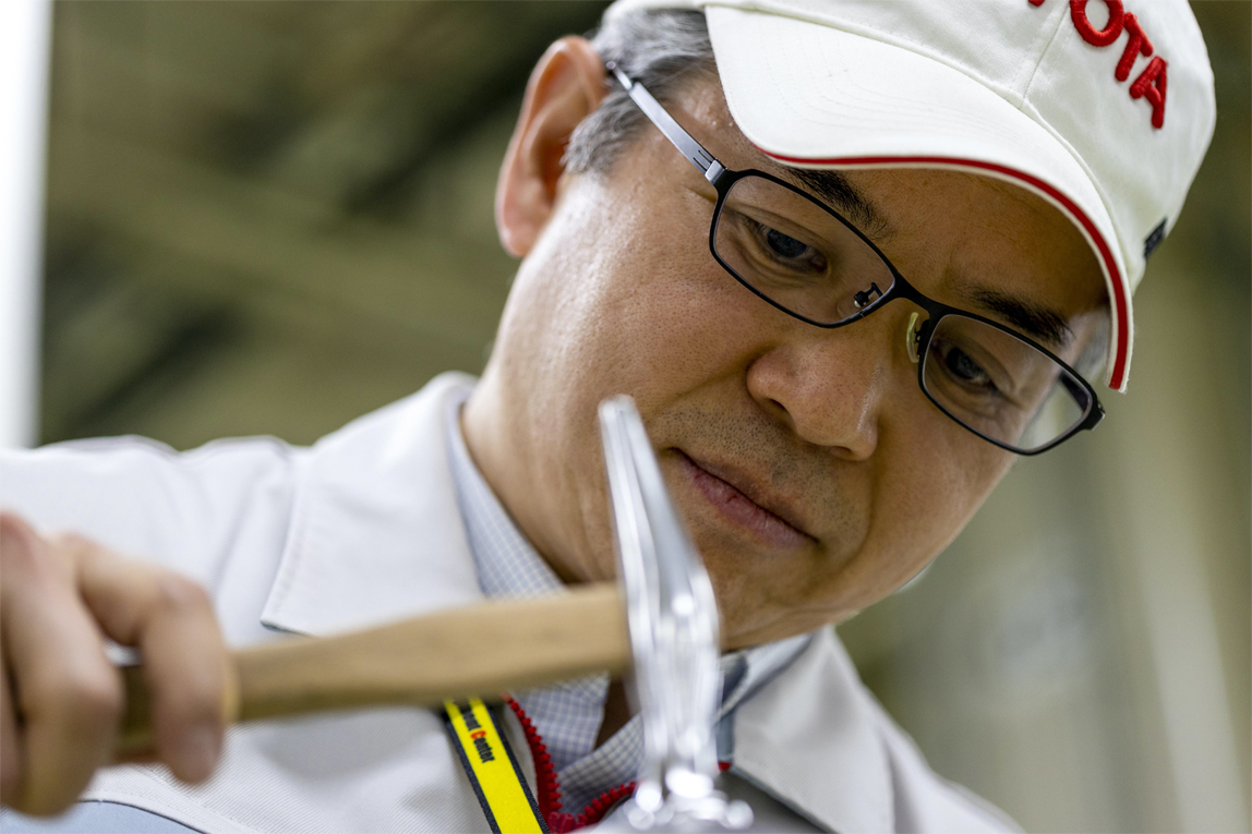 “最近高张力钢板等手工加工困难或根本无法手工加工的材料越来越多。另外,冲压锻模和夹具的制作也不用手绘图,可以通过3D软件的设计数据完成。种种因素相加后,和以前相比,造物速度确实变得更快了。尽管如此,传统的钣金加工技能与技术对于今后的汽车制造业来说还是必不可缺,因此必须要传承下去。但是目前,学习这项技能需要10年这么长的时间,怎么做才能更效率、更快地让后辈们掌握这项技能呢?我一直在思考这个问题,希望能找到适合的方法将这个传统技能传承下去。”