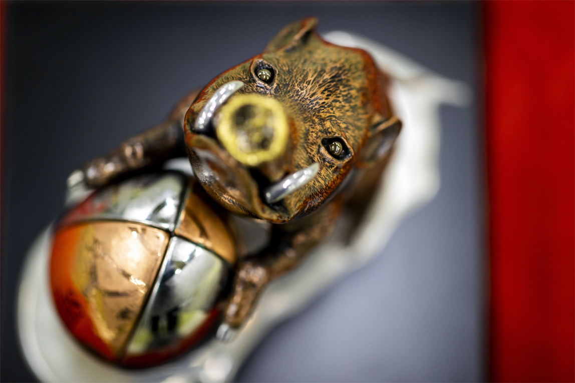 作为橄榄球世界杯赛的纪念,在吉野的指导下,继承了意志的年轻人们制作了野猪和橄榄球形状的小饰物。由铜等各种材料打造的野猪模型看起来栩栩如生。