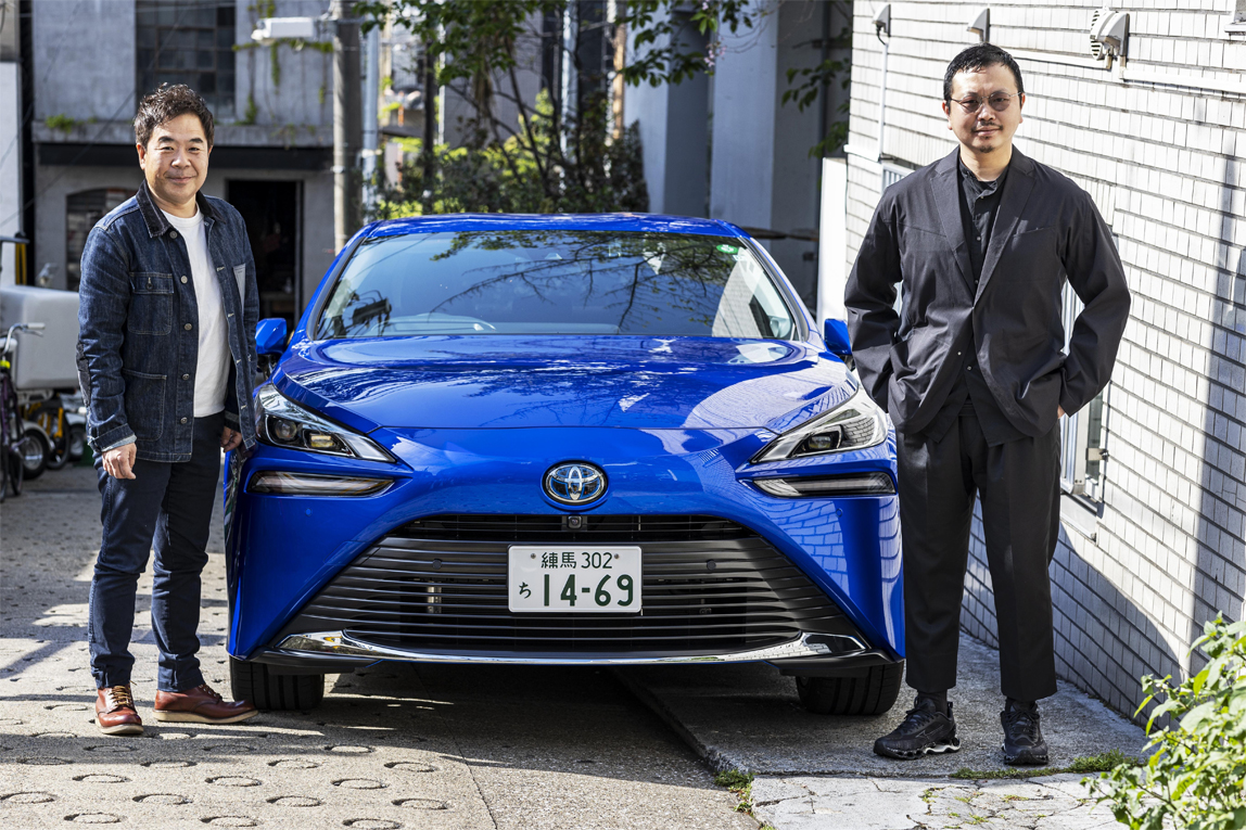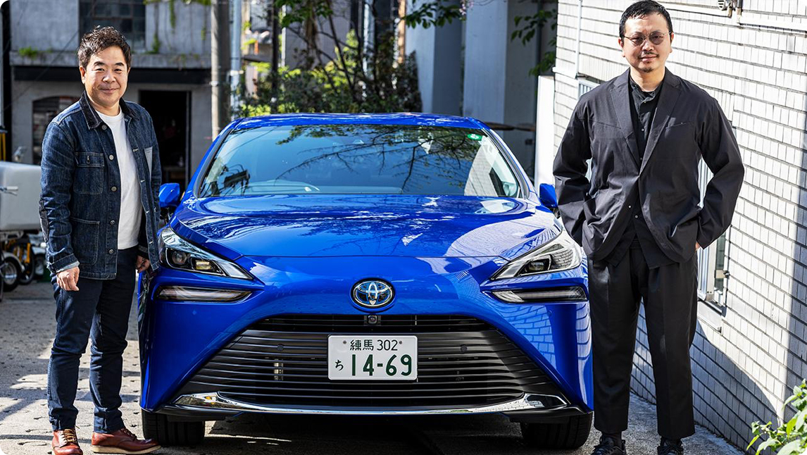 冈崎与既是时尚设计师,同样又因喜欢车而知名的相泽阳介坐在一起,畅聊了购买MIRAI以后的感受,并且还探寻了今后的MIRAI和汽车的可能性。