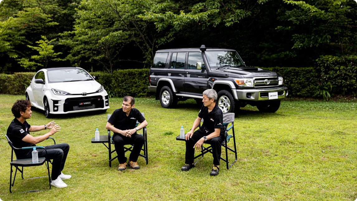 而两位的聆听者是驾驶过历代LAND CRUISER的TOYOTA GAZOO Racing 的领队脇阪寿一。