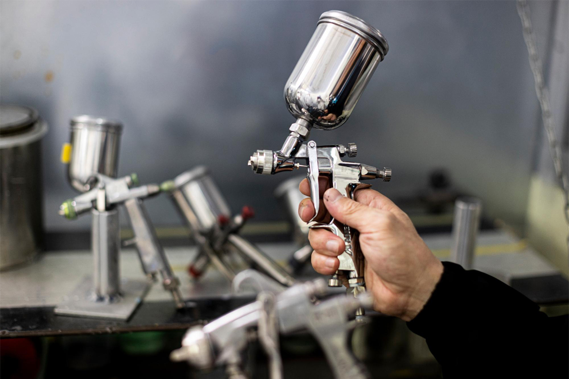 宮地钟爱的补漆用喷枪。配合不同用途,喷枪种类繁多。