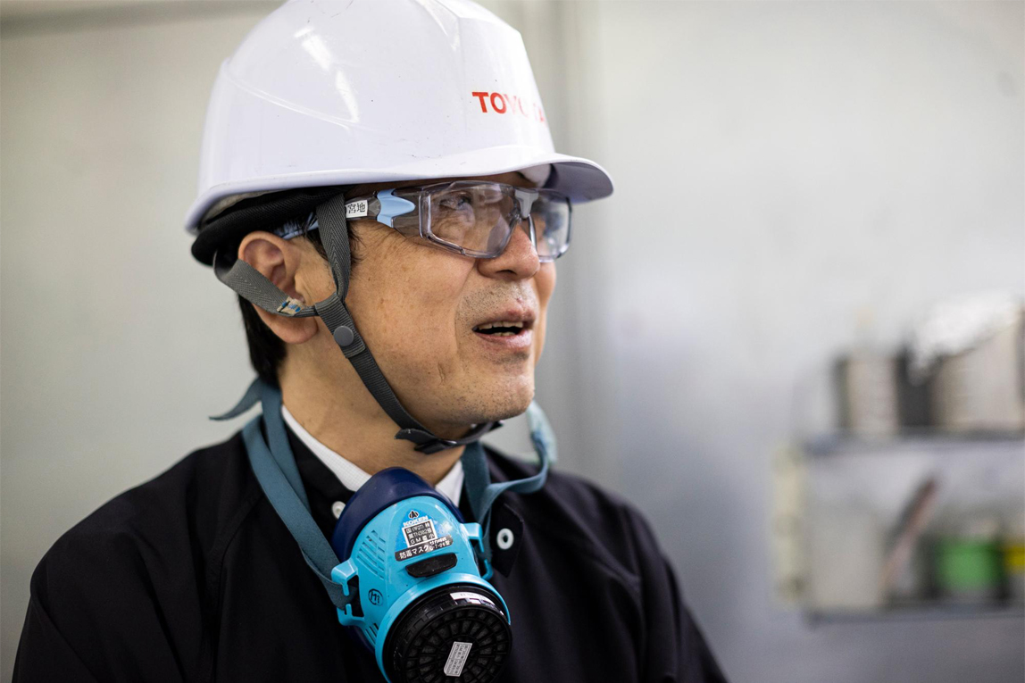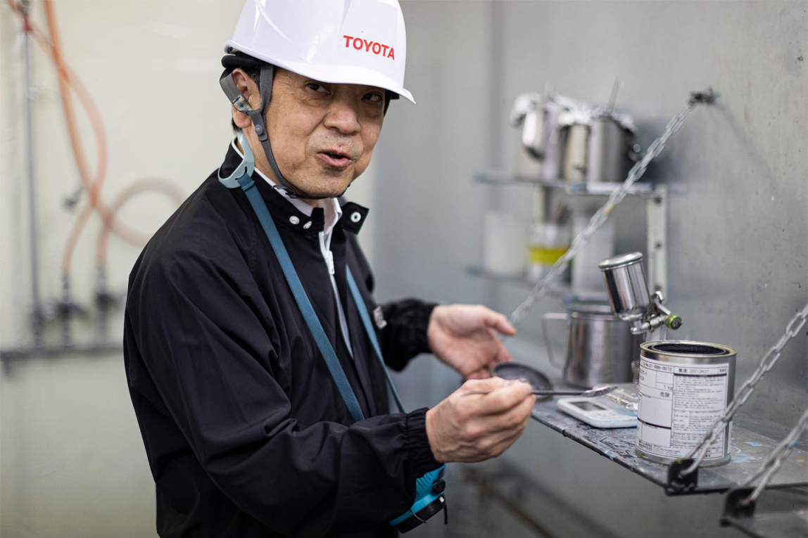 宮地活跃在生产一线,是丰田车身“水性化”涂装技术革新的功臣之一。2000年,当宮地荣获专业技能A级时,全球汽车制造商都在为保护地球环境而全力攻坚这一技术课题。