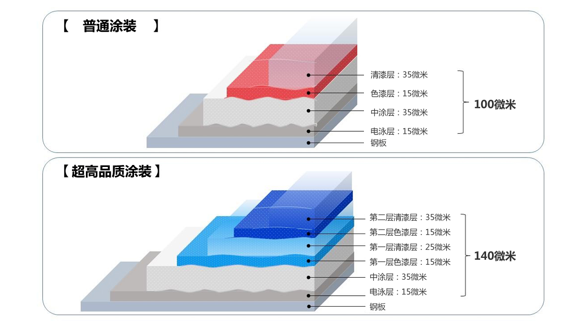采用最新涂装工艺制造的外板,色泽鲜艳,光彩照人