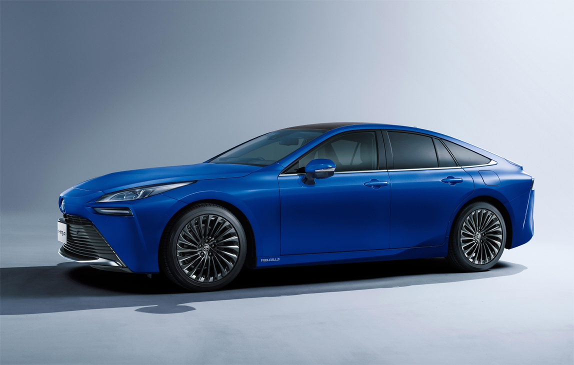 此外,燃料电池汽车(FCEV)的新车型MIRAI中采用的“Force Blue”也是出自宫地等人之手。这种超高品质的蓝色涂装,闪耀着前所未有的绚丽光泽,具有一种耐人寻味、意味悠长的非凡魅力。在清漆层间多喷涂了两层色漆,这种涂膜结构使得光线透过第二层色漆层时,第一层色漆层的反射光形成深沉光影,丰富了色彩的层次。要达到这样的效果,需要在中涂层上面施加四道涂层。