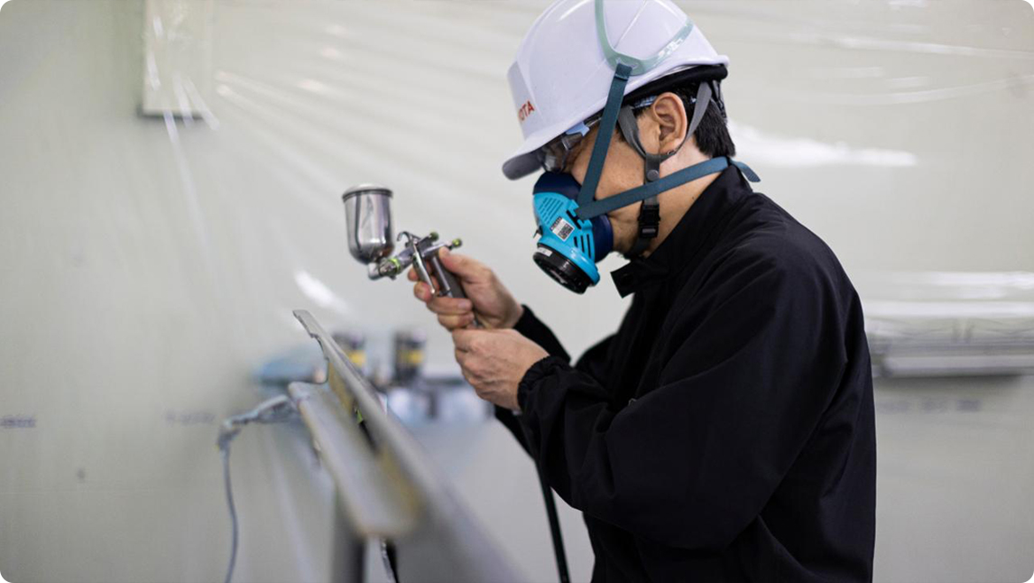 现在的宫地正在全身心的投入在生产现场,致力于开发出超越高品质涂装的“超高品质涂装”工艺。