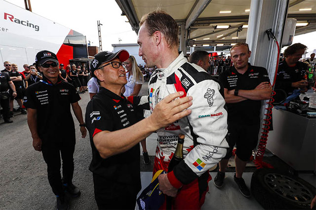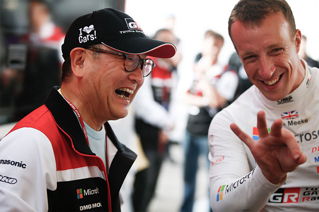 比如,车队获胜时丰田社长会发表感言。