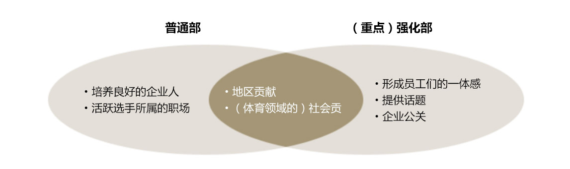运动部的存在不但能够为公司活跃气氛,增强团体意识,还促使我们进一步思考,要如何为社会做出贡献。我们认为,首先要从普及运动项目这一切入点开始,让体育运动更加深入民众生活。
