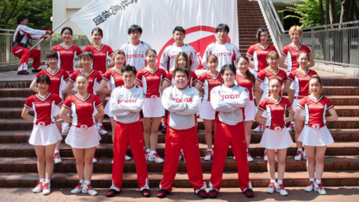 我们在近处将他们的魄力收入眼底,他们出色的团队合作让我们深感佩服。这时,前面提到的OB说:“你知道丰田应援团最大的特点是什么吗?就是全体成员都来自丰田”。丰田汽车应援团共有32名成员,其中13名来自应援团,19名来自啦啦队。为了给运动部的各位加油助威,他们一直在做自主练习,同时不借助任何外人的力量。