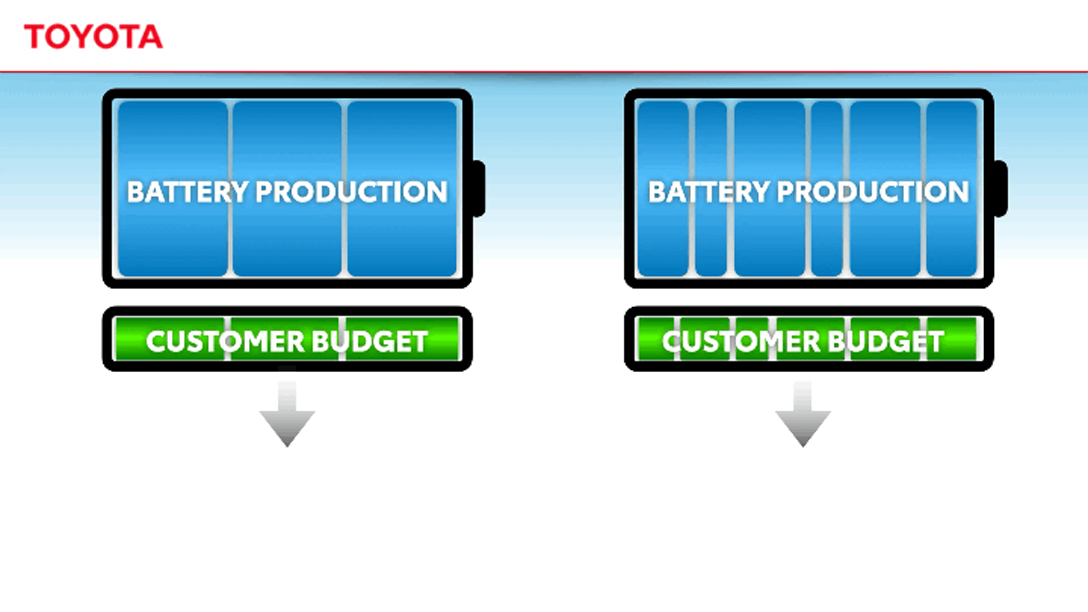 为了能有效且最大限度地利用生产出来的电池组,此时巧妙的分配显得尤为重要。即是说,不是像我的MODEL X那样将所有电池集中在可以长距离行驶的BEV上,而是多分散在HEV和PHEV等“尺寸合适”的电动车上。