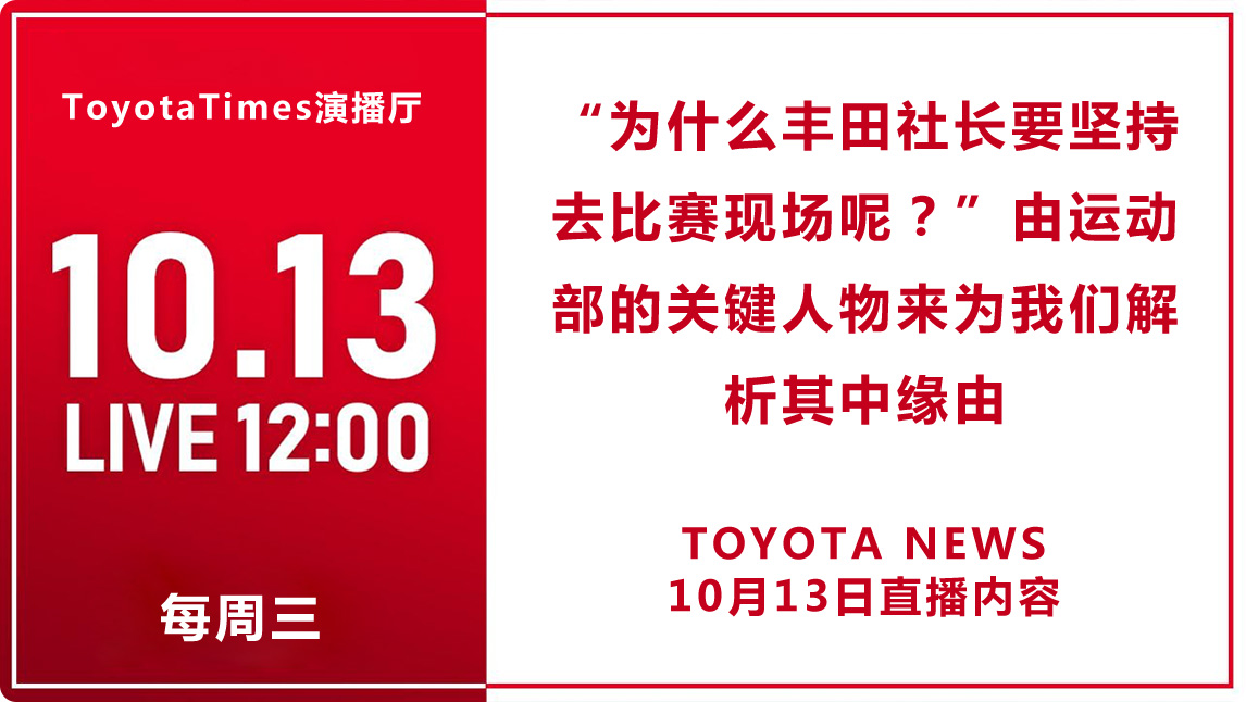 10月13日ToyotaTimes演播厅节目邀请到的嘉宾,是来自总务人事总部的东崇德副部长。这期节目围绕“为什么丰田社长要坚持去比赛现场?”这一主题,展开了热烈的对谈。