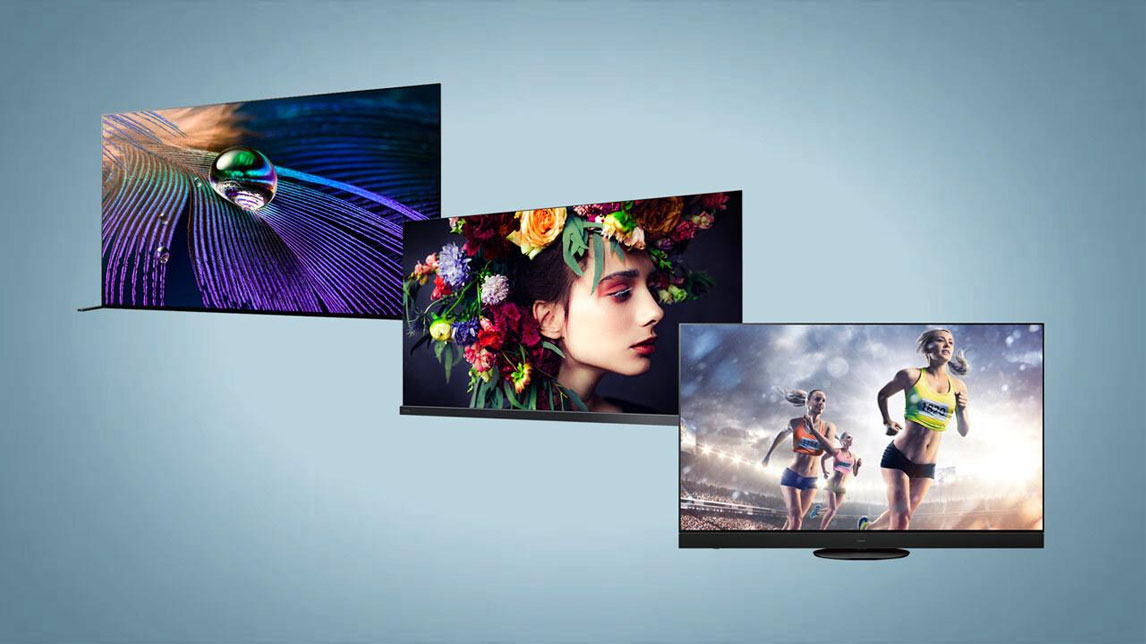 从左到右:索尼“4K有机EL电视BRAVIA®XRJ-83A90J(83V型)”、东芝电视“定时移位4K有机EL液晶电视REGZA 65X9400S”、松下“4K有机EL电视VIERA TH-65JZ2000”