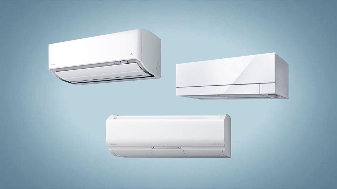 从左上角开始顺时针方向:大金空调“滋润凉爽”X系列、三菱电机“雾峰”FZ系列、日立空调“白熊君”X系列