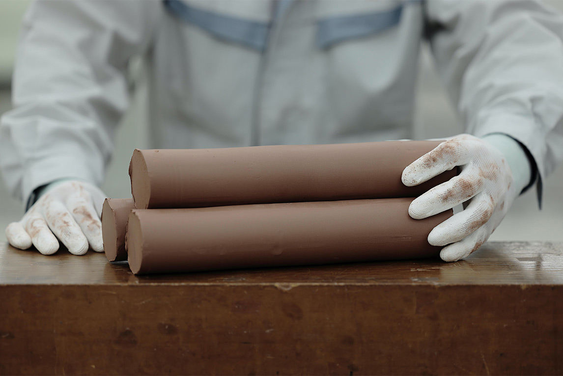 可以看到,桌上赫然摆放着加热到68度左右的,长30cm、直径5cm的工业黏土。这块简单的黏土在江藤先生的手下,逐渐变得生动了起来。